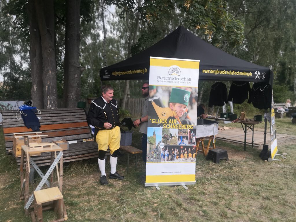 Am alten Huthaus findet von 10.00 – 15.00 Uhr ein Frühschoppen statt, musikalisch begleitet von den Erzgebirgsmusikanten und dem Bergchor „Glück-Auf“ Schneeberg.
